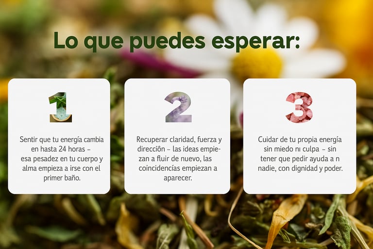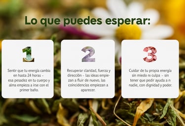 Este sistema ha ayudado a más de 3.000 personas y ahora tú también puedes formar parte de este equipo de personas prósperas con autoestima y amor propio. Si no ves una diferencia en tu vida con los baños en 7 días, te devolvemos el dinero, sin preguntas.